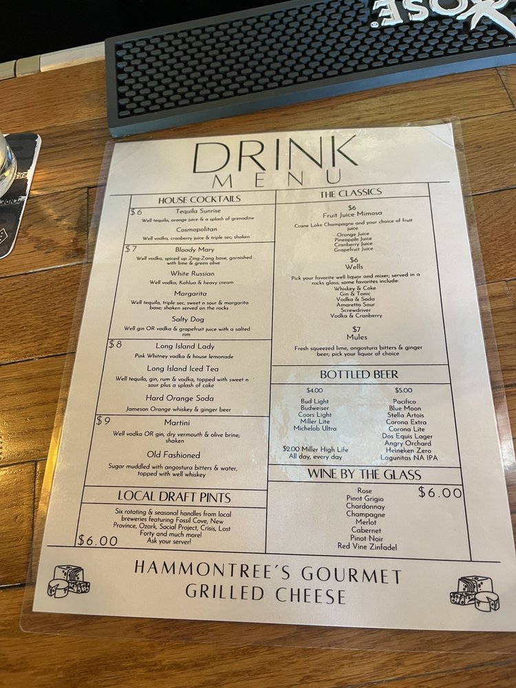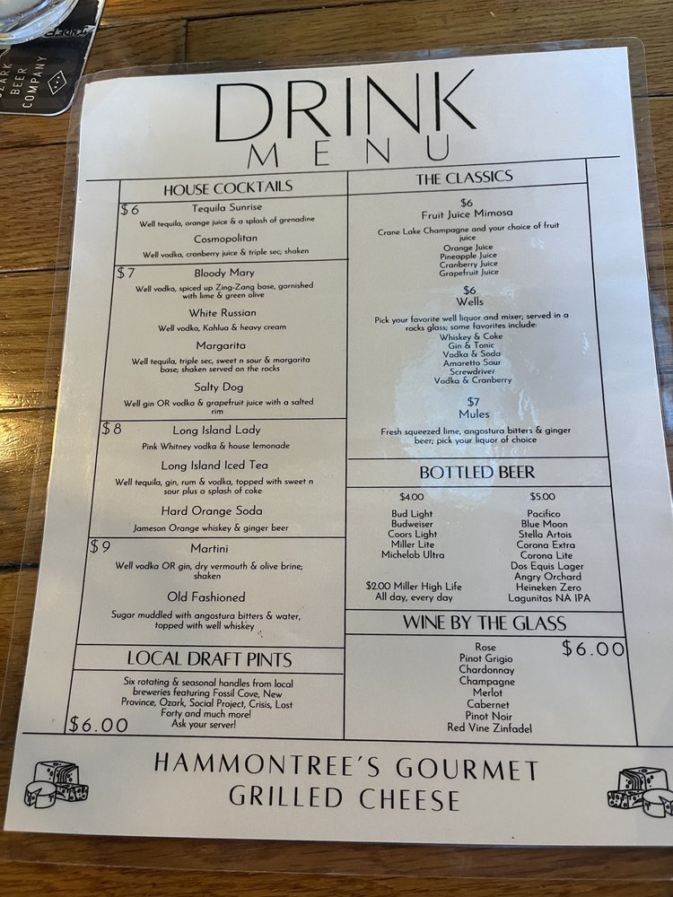 Hammontree's Grilled Cheese, located in Fayetteville, AR, offers a unique dining experience in the New American - Sandwiches category. The menu boasts a variety of grilled cheese options, including vegan and vegetarian choices, making it a great spot for all diets. With a plethora of utilities like delivery, takeout, reservations, and catering, Hammontree's ensures convenience for all customers. The casual and hipster ambiance, outdoor seating, and full bar create a relaxed atmosphere suitable for groups, kids, and even furry friends. The inclusion of options like street parking, Wi-Fi, and reusable tableware further add to the appeal of this establishment. Overall, Hammontree's Grilled Cheese is a must-try for a delicious and laid-back dining experience.